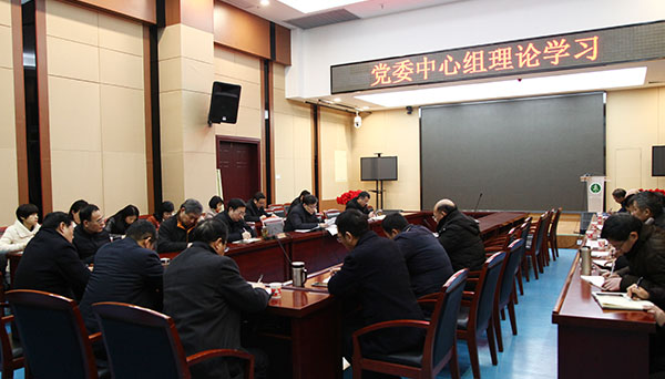 1月18日下午,校党委中心组召开2018年首次学习会。校党委中心组组长、校党委书记李俊主持会议并讲话,校党委副书记刘群英、副校长朱启星、校纪委书记常业军、副校长余永强及校党委中心组全体成员参加了会议。