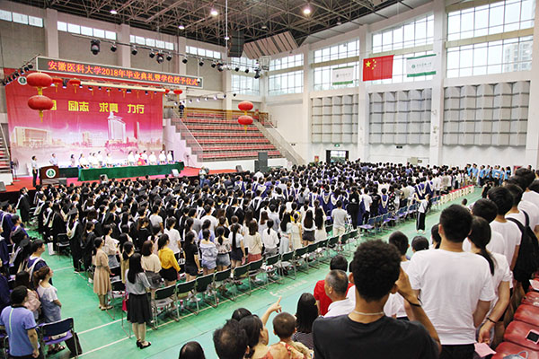 曹云霞在讲话中将“三盏明灯”作为毕业礼物送给了全体毕业生。她勉励全体毕业生,在人生新征程中,要高举“信念”之灯,树立与新时代主题同心同向的理想信念,坚定“除人类之病痛、助健康之完美”的信念,明辨是非、扬善弃恶,守护道德与善良;高举“责任”之灯,胸怀家国、胸怀人民,知行合一、脚踏实地、奋发有为,在一代又一代安医大人接力奋斗中,把为人民健康服务的担子“挑起来”;高举“求知”之灯,以“求知若饥,虚心若愚”的态度,去读好人生“有字的书、无字的书、心灵的书”。