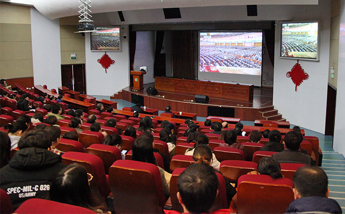 上午10时,校领导和机关党员干部齐聚图书馆报告厅,认真收看大会直播。他们听到激动处,情不自禁地跟着鼓起掌来。大家表示,习近平总书记的报告回顾历史、展望未来,催人奋进、备受鼓舞。总书记强调,不忘初心、牢记使命,将改革开放进行到底。作为安医大人,我们必须秉持初心、勇担使命,不断推动高水平医科大学各项事业向前发展,努力为建成社会主义现代化强国的医疗卫生事业、为不断实现人民对美好生活的向往提供人才支撑和智力支持。