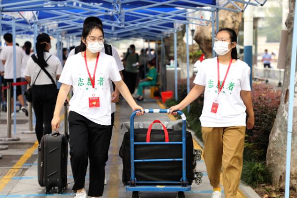 “同学,你好,我帮你拿行李。”“同学,你好!你是哪个学院的?我帮你把行李带去报到地点。”到达学校,身穿统一服装、佩戴红色胸牌的志愿者们在北门、图书馆门口、青年志愿者岗亭等校园各个服务点,热心地为新生提供托运行李、报到指导、问题解答等全流程服务。他们分工明确、各司其职,周到的服务留下无数温暖瞬间。