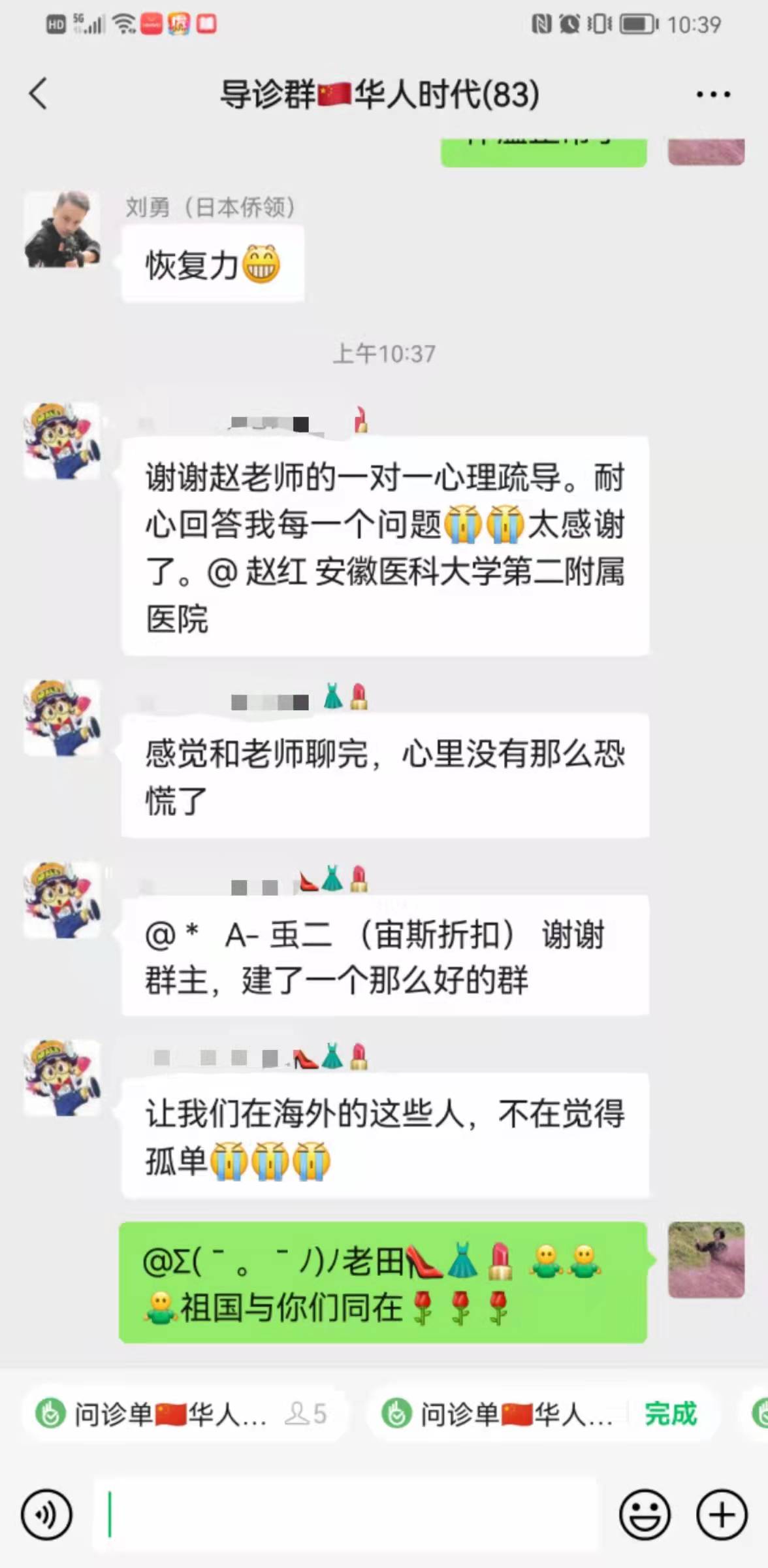 于是,赵红加入到日本侨团建立的确诊者微信群,利用晚上和周末休息的时间,为需要帮助的海外同胞提供义务帮助,这些华人大多为轻症患者,针对他们的身体状况,赵红一对一地给予治疗指导并耐心地为他们进行心理疏导。
