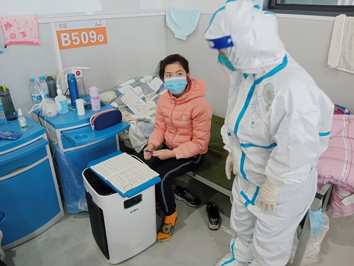 小姑娘落落大方,放下笔主动和孙主任聊起来。真是无巧不成书,小姑娘老家就是我们合肥郊区,目前跟随父母在上海生活,也刚好是五年级,平时学习成绩很不错。方舱遇老乡,孙主任自然也是倍感亲切,给小姑娘说起了自己的孩子,并分享了一些自己平时教育孩子的学习方法和经验,表扬小姑娘在方舱内仍然坚持学习,鼓励她克服暂时的困难,积极适应环境配合治疗,争取早日康复出舱。