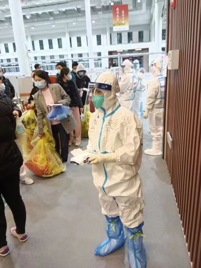 作为院感组的一员,在确认进舱的医务人员防护用品穿戴合理后我也跟随进舱查看方舱的各项情况。有条不紊的医护人员、和谐有序的舱内环境使我紧张的心情放松了许多,相信在我们所有人的努力下,要不了多久,大家一定可以回家与家人团聚。