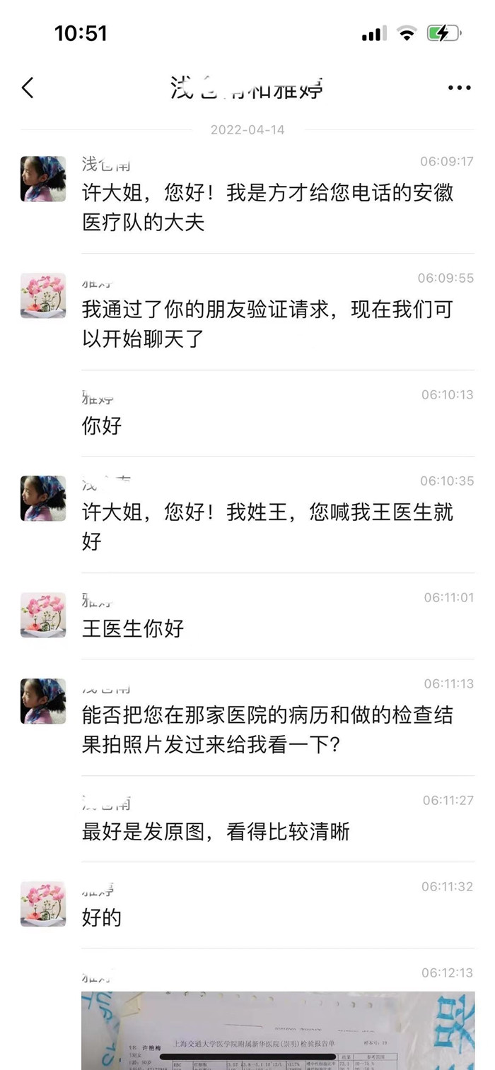 新安晚报 安徽网 大皖新闻讯 “我是王医生,请把您在医院的病历和检查结果发给我看下。”“大姐,有救护车去接您了。”“大姐,已经回到床位上了么?”听到患者已经安全回到方舱医院,王楠紧绷了一夜的心终于放下了。日前,上海复兴馆方舱医院一患者突发心绞痛,安徽援沪专家进行紧急处理后助其转运至有条件的医疗机构完善检查以全面评估。