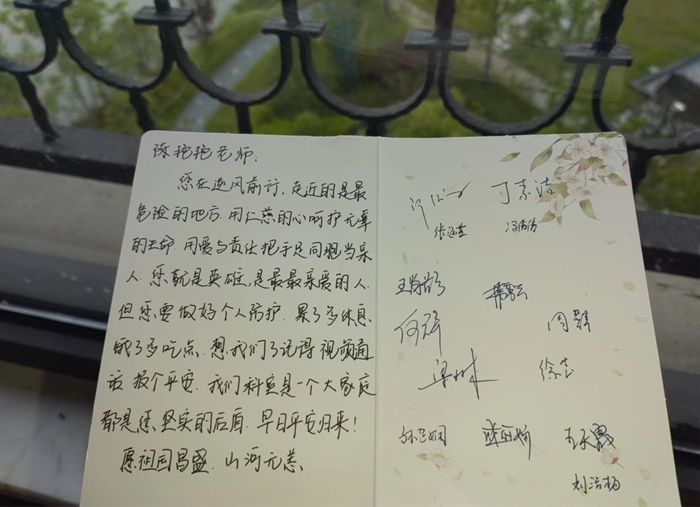 她对我们的照顾总是无微不至,不管困难大小,她都会竭尽全力去解决。她知道我最牵挂的是家里的两个孩子,为了减轻我的担忧,她偷偷地安排许德琼老师以及科室的姐妹去家里看望老人和孩子。