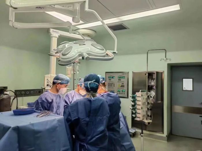 两个多小时后,这台“复杂肠粘连松解+小肠双筒造口”手术顺利结束,术后患者被送至医院重症医学一科隔离单间,已脱离生命危险,由护士护理。