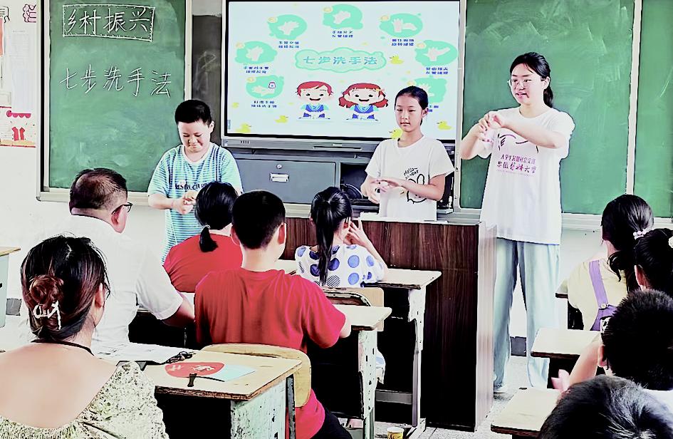 “望江益行”暑期实践团成员教授小学生们七步洗手法