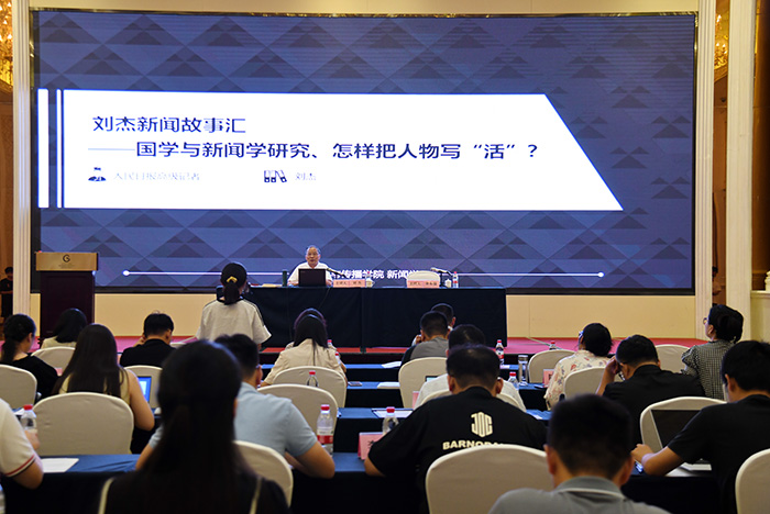 人民日报社安徽分社原社长、高级记者刘杰聚焦人物通讯,作了题为《国学与新闻学研究怎样把人物写“活”》的专题报告。他结合个人近40年的一线记者工作经历,通过剖析国学名篇以及中国新闻名作背后的文学修养和语言文字技巧,就人物通讯提出了巧妙架构、丰满细节、优化语言、增强表现、凸显思想、创新手法等写作建议,勉励全体学员保持热爱,以赤诚之心努力写“活”每一个和每一群新闻人物。