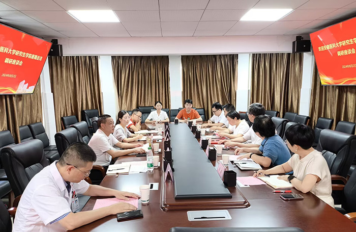 培养单位负责人和导师代表座谈会上,调研组详细了解研究生管理情况,就调研目的进行充分说明,并就研究生提出的工作强度、临床科研、能力提升等方面意见建议与培养单位进行交流探讨,以促进培养单位全面落实学校决策部署,建立健全管理体系,明确工作职责,全力保障研究生的成长和发展。各培养单位负责人就研究生在读规模、培养情况、管理体系等进行整体介绍,并对调研组反馈的问题进行正面回应,对于实际存在的问题表明态度、析因溯源、立行立改,提出相应的解决方案,并表示要加强医院与学校的联系,共同做好研究生培养与管理工作。