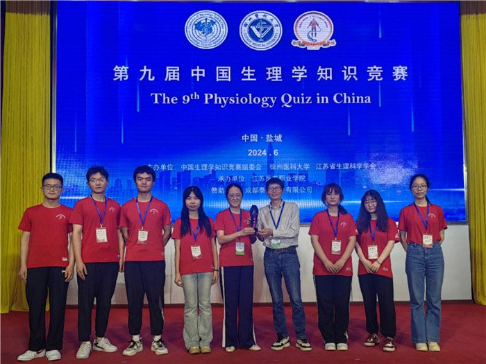 2024年6月1日至2日,第九届中国生理学知识竞赛在江苏盐城举办。经激烈角逐,我校学生斩获个人笔试特等奖和团体口试一等奖,笔试平均分名列全国第一。