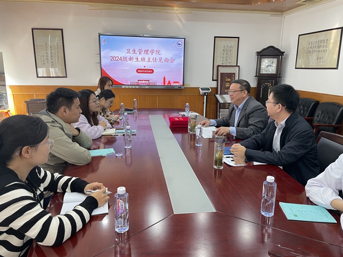 10月24日,卫生管理学院举行2024级新生班主任见面会。院党委书记赵云峰出席会议,并为2024级新生班主任逐一颁发聘书。学院党委副书记胡鹏主持会议,并领学学校班主任工作考核办法以及班主任、创新创业类、学习类社团指导教师管理办法等相关文件。