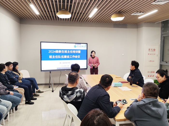 10月21日,第二临床医学院在新医科中心六号楼一楼活动室举行2024级新生班主任培训暨班主任队伍建设工作会议。学院党委副书记鲍丙刚出席并为新生班主任颁发聘书,学院学生党总支副书记余皖婉主持会议。