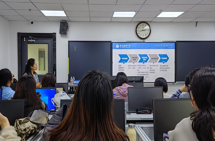 近年来,为满足医学生个性化、多样化学习需求,人文医学学院外语系不断创新“外语+医学”教学模式,以省级“四新”研究与改革实践项目建设为契机,开展医学英语专题线上微课程建设,并以医学科普英语微视频、医学科研英语演讲等校本特色赛事活动为抓手,以赛促学,提高学生的医学英语应用能力,助力我校高质量学术型医药卫生人才培养。(人文医学学院 王然 吴洁)