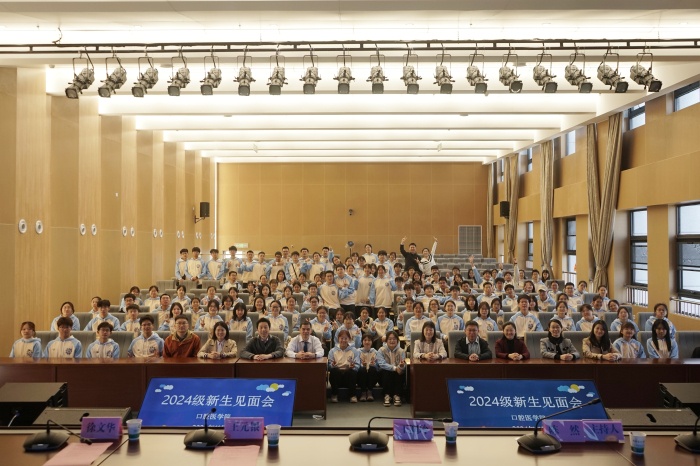 口腔医学院2024级全体新生、辅导员、班主任以及相关职能部门负责人参加见面会。(口腔医学院 丁玲 夏磊)
