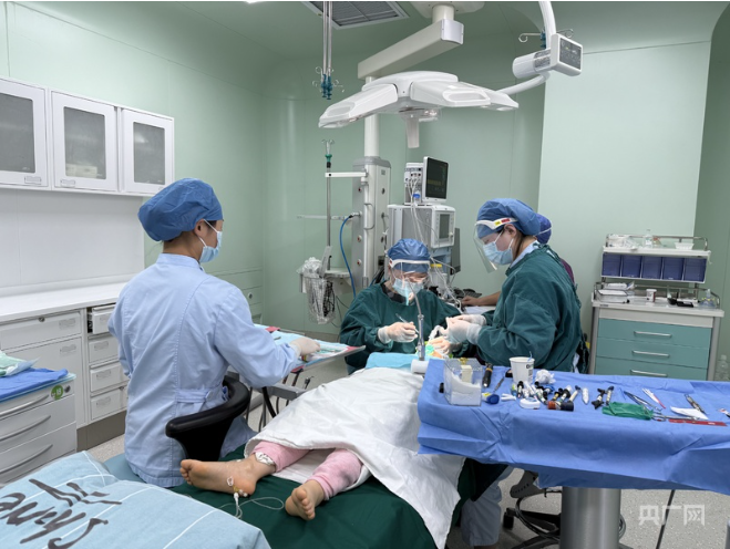 患儿正在进行牙齿修复手术(央广网记者 鲍玉婵 摄)