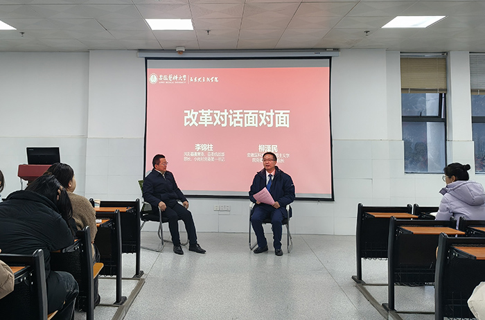 12月20日下午,安徽省滁州市凤阳县委常委、县委统战部长、小岗村党委第一书记李锦柱应邀走进我校思政课堂,以“敢为人先开新篇 乡村振兴再出发”为主题,从一名基层书记的视角,为学生生动讲述小岗的改革故事。马克思主义学院党委副书记、院长柳泽民主持会议。