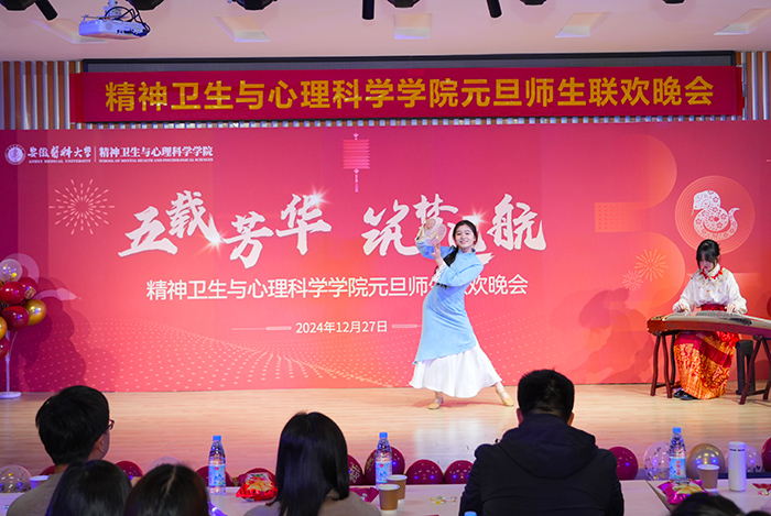 2024年12月27日晚,精神卫生与心理科学学院“五载芳华,筑梦远航”元旦师生联欢晚会在校青年之家举行。