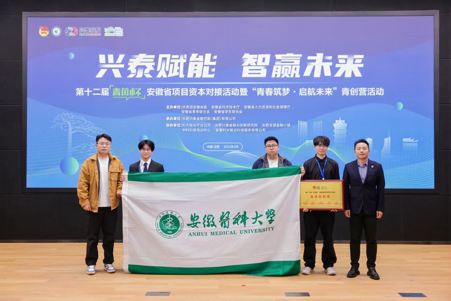 3月19日至20日,“兴泰赋能智赢未来”第十二届“青苗杯”安徽省项目资本对接活动暨“青春筑梦·启航未来”青创营活动在合肥举办。我校创业项目荣获金奖1项、银奖3项,1件作品实现意向投资签约,学校荣获“优秀组织奖”。