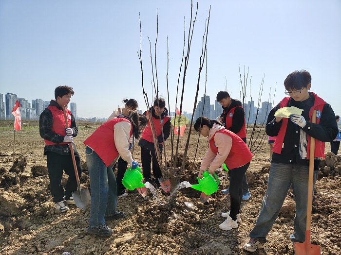 春城筑绿,践行生态环保理念。学院师生前往合肥新站高新区“小田变大田”工程基地,开展“春城筑绿,梦溪育人”植树节主题活动。大家挥锹铲土、扶苗浇水,合力栽下十余株红叶李树苗,为生态建设增添新绿。活动将劳动实践与国情教育紧密结合,同学们还学习到“小田变大田”改革在集约化耕作、生态保护中的意义。“亲手种下的树苗会成为未来的绿荫,这让我深刻体会到‘绿水青山’需要每个人的行动。”2023级生物医学工程专业黄汪玲同学感慨道。