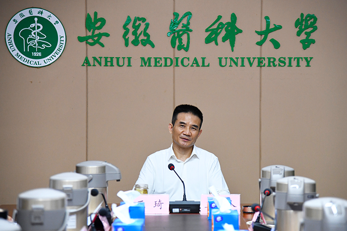 就进一步贯彻落实全国、全省教育大会精神,王琦提出三点要求,一是抢抓教育强国与教育强省建设重大机遇,争创“双一流大学。要立足省高峰学科对标晋级和“双一流”培育项目建设,紧密结合学校实际,认真遴选首批“医+X”优势学科群项目。加强统筹谋划,以钉钉子精神推动学校“双一流建设落地落实、见行见效,为安医大下一个百年发展奠定坚实基础。二是牢牢把握服务发展大局的重要方向,推动安徽健康产业发展。要围绕“大健康”领域,聚焦安徽省战略部署,密切结合地方特色和行业企业需求,发挥学科优势,完善科技创新体制机制,深化高能级科研平台建设,进一步推动产学研医融合发展;要通过加强与地方政府、企业和科研院所的合作,推动科技成果转化,助力安徽健康产业高质量发展。三是坚持人才优先发展战略,打造一流师资队伍。人才是学校发展的第一资源,要引育并举,聚焦“双一流”学科高质量建设与培育需求,通过完善人才引育机制,优化人才发展环境,提升人才服务水平,为学校的可持续发展提供强有力的人才支撑。