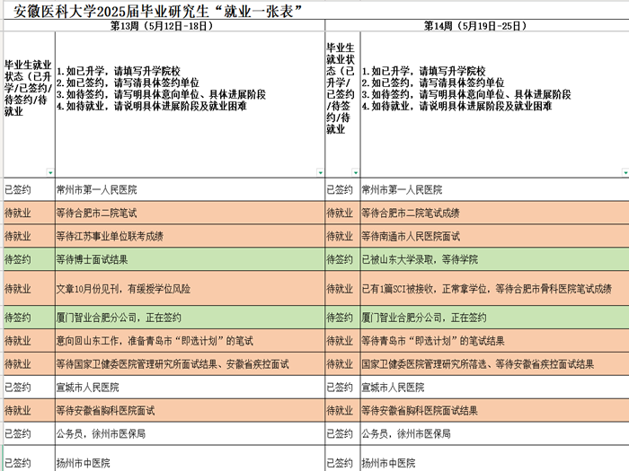 研工部创新推出“就业一张表”行动,根据学生求职进展,划分“已升学”“已签约”“待签约”“待就业”四类群体,并进一步细分具体进展阶段及就业困难,每周更新,更加清晰化、精准化地开展就业帮扶工作。同时,针对研究生就业周期长、签约慢等问题,在综合分析往年去向落实率变化规律的基础上,通过“目标倒推-节点分解-动态校准”三步法,配套制定了“就业目标表”,加快就业工作节奏,有的放矢,按时间节点完成就业目标。