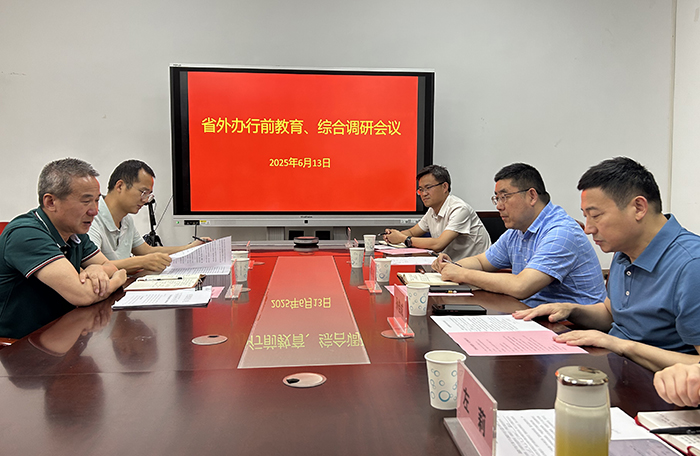 6月13日上午,省外办出国管理处处长王浩一行来我校,对近期出访团组开展集中行前外事纪律教育,并调研我校因公出国管理工作。国际学院直属党支部书记黄华兴主持会议。