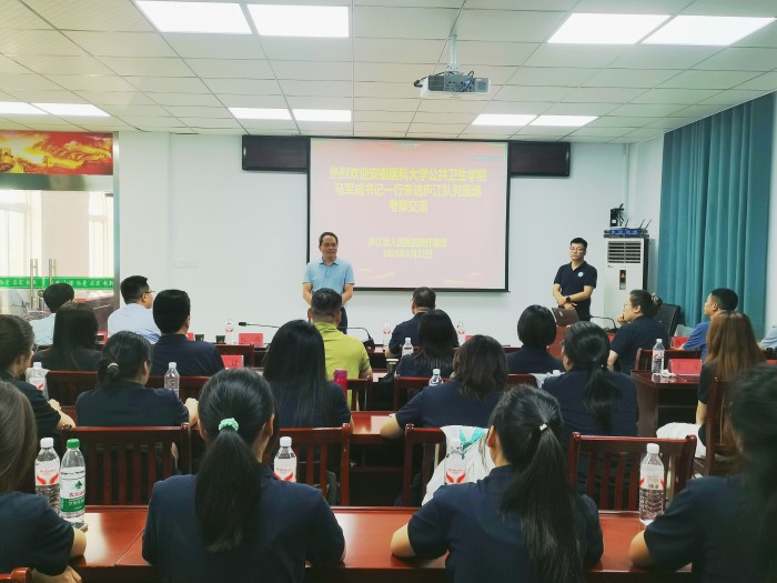 8月22日下午,公共卫生学院党委书记马军成带队前往庐江,慰问该院“减重‘胃’健康——庐江队列”暑期“三下乡”社会实践团队的师生,并与中国科学技术大学公共卫生学院执行院长包巍教授团队,就人群队列建设研究进行深入交流。