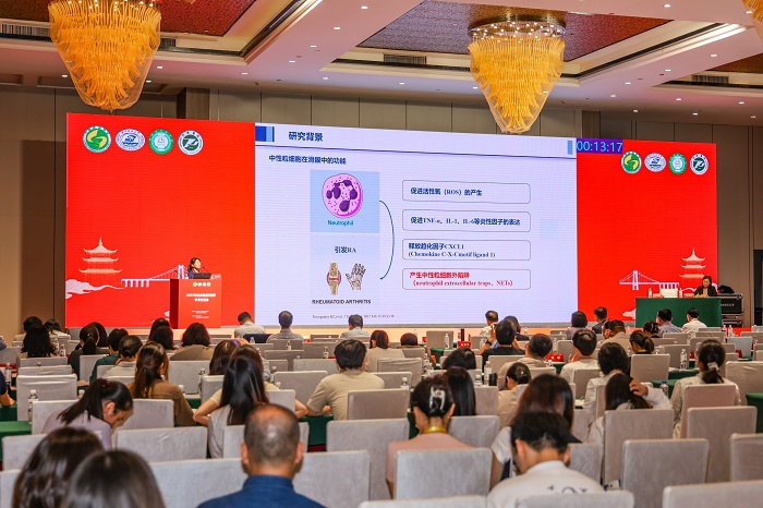 会议期间,中国药理学会副监事长、我校“徐叔云讲席教授”魏伟作题为《中国抗炎免疫药理学的创立、发展与创新》的大会特邀报告,详细介绍了中国药理学会抗炎免疫药理学专业委员会的成立过程、发展历程,并作了工作展望。药学科学学院副院长张玲玲教授受邀作《NETs通过CCDC25启动ERS介导RA-FLS异常活化》大会专题报告,多位青年教师和研究生受邀作专题报告或青年论文报告交流。